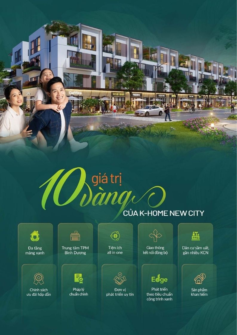 Sở hữu vị trí đắt giá, K-Home New City mang đến sự cân bằng hoàn hảo: một bước chạm đến sự sôi động của khu vực lõi trung tâm và một bước trở về tổ ấm an yên, hạnh phúc. Thừa hưởng trọn vẹn dòng chảy giao thương của thành phố mới Bình Dương, K-Home New City còn mở ra những cơ hội kinh doanh vô cùng hấp dẫn và bền vững với thời gian.